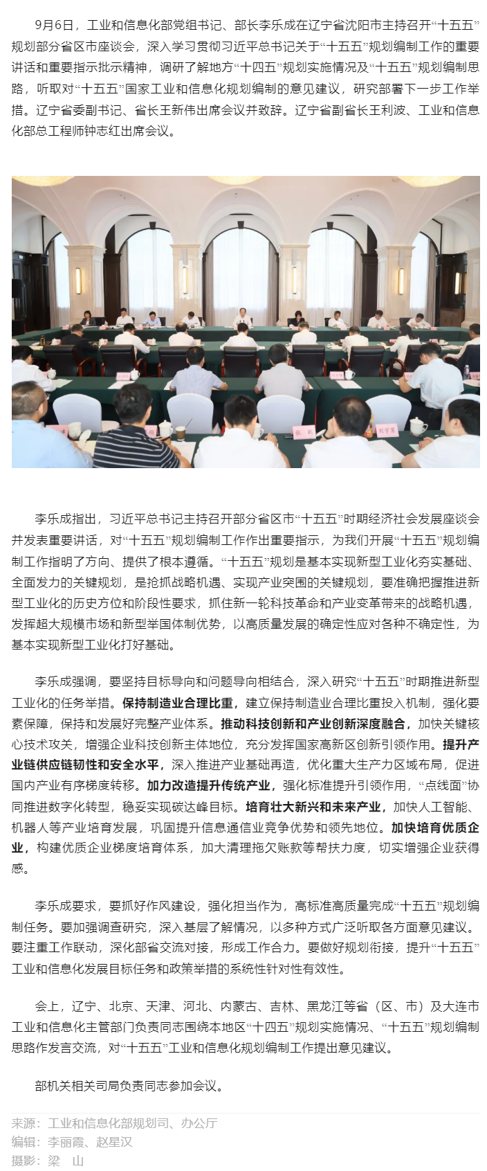 李乐成主持召开工业和信息化“十五五”规划部分省区市座谈会