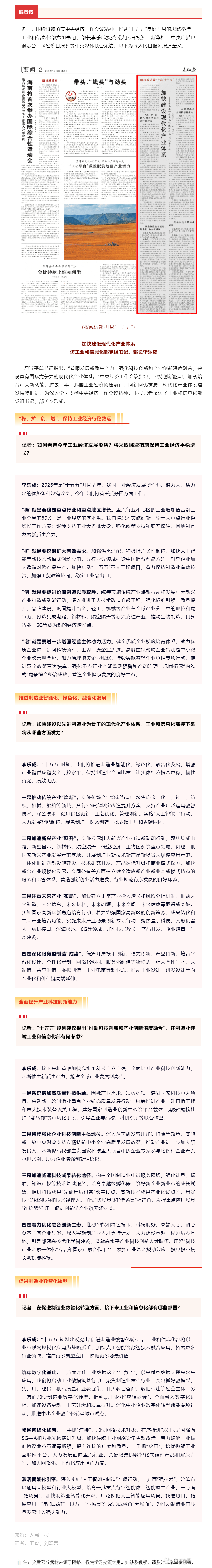 李乐成接受《人民日报》采访:加快建设现代化产业体系